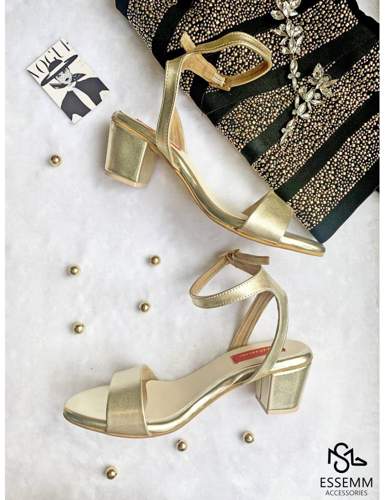 CLASSIC GOLD SANDAL BLOCK HEELS