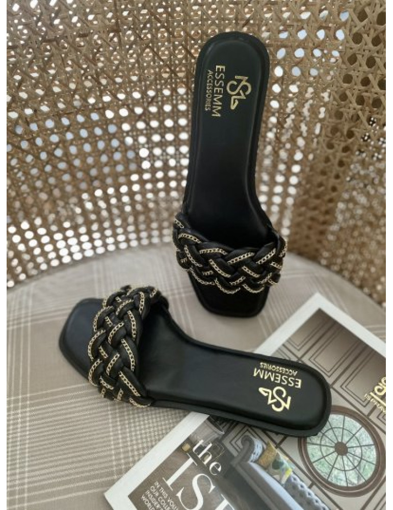 BLACK CHAIN TWISTED SLIDER WITH A SMALL BOX HEEL