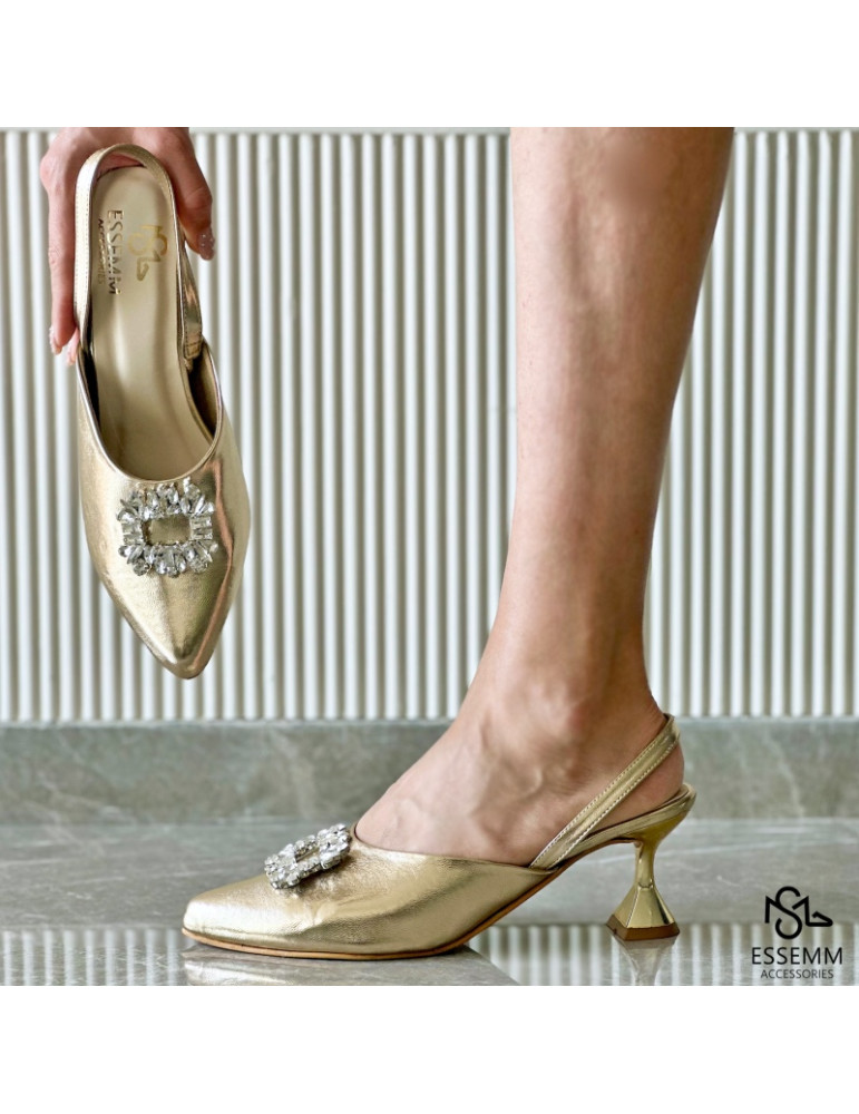 GOLDEN SHOE WITH A BACK ELASTIC FOR COMFORT