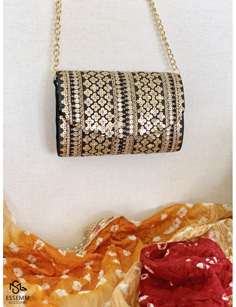 BLACK WITH GOLD SEQUNCE CLUTCH